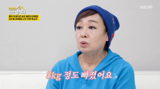 2일 방송된 KBS 2TV 예능 프로그램 '박원숙의 같이 삽시다'에서는 혜은이가 체중 감량 비법을 소개하는 모습이 그려졌다.