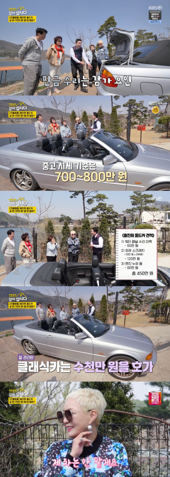 홍진희는 "주변에서 내 차를 보고 똥차라고 하면서 200만 원밖에 못 받을 거라고 하더라"고 토로했고, 차량 평가사는 "그분은 날강도 심보가 있는 분"이라고 위로했다.