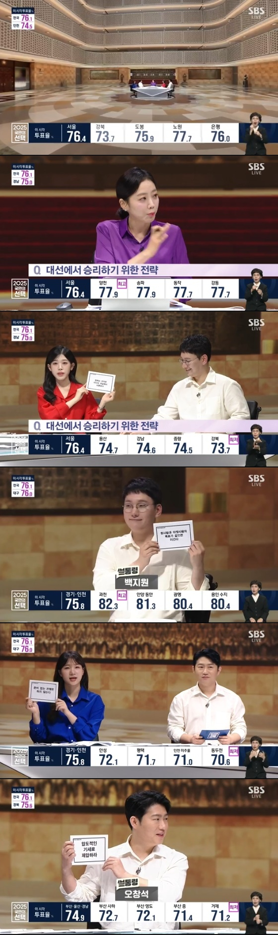 3일 방송된 SBS 개표방송 '2025 국민의 선택'에서는 양 당을 대변하는 '썰통령'들이 출연해 대선에서 승리하기 위한 전략을 놓고 신경전을 펼치는 모습이 그려졌다.