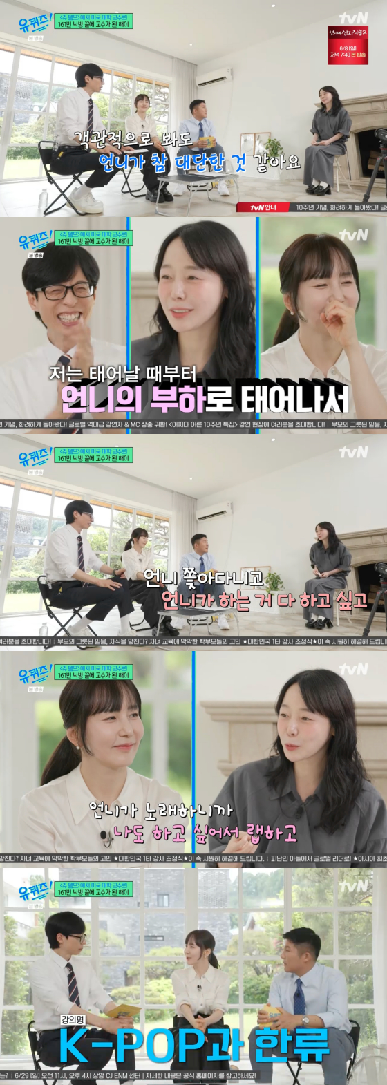 이에 유재석이 "최초로 만든 수업이 있다고 들었다"고 묻자 해이는 "'K-팝과 한류'라는 강의를 개설했다. 반응은 폭발적"이라고 말하며 미소를 지었다.