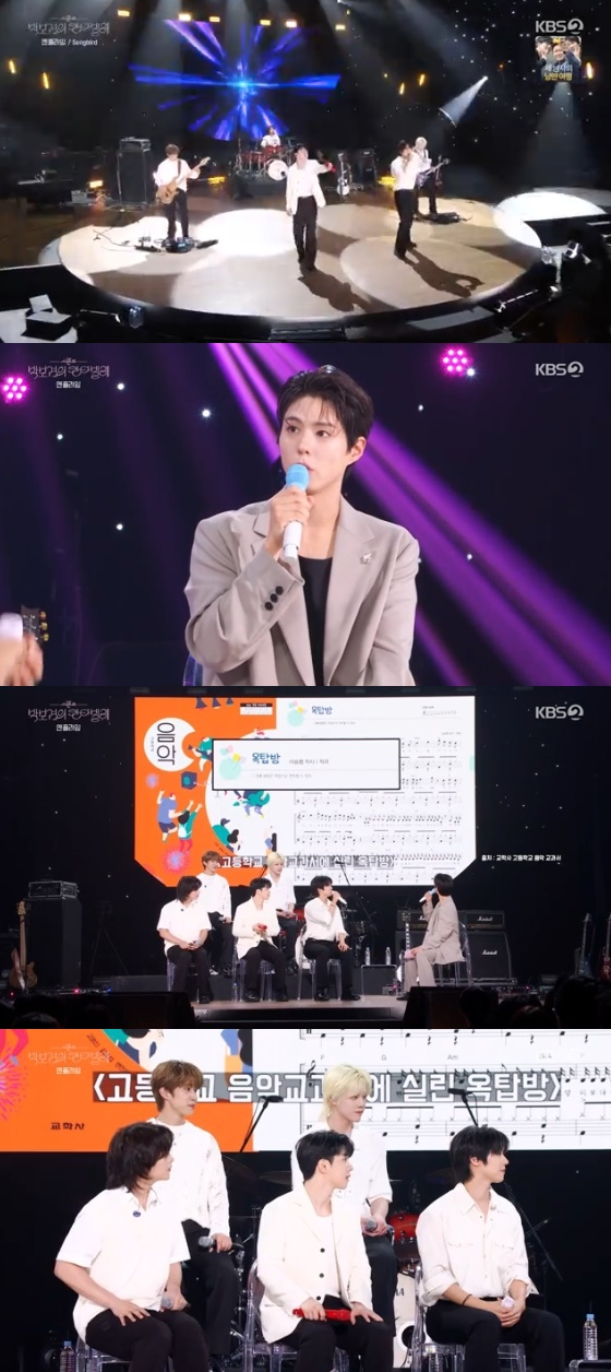 또 박보검은 엔플라잉의 대표곡 '옥탑방'이 고등학교 음악 교과서에 실렸다는 사실을 소개해 눈길을 끌었다. 이승협은 "어머니, 아버지가 너무 좋아하신다"며 "가문의 영광이라고 하셨다"라고 뜻깊은 소감을 전했다.