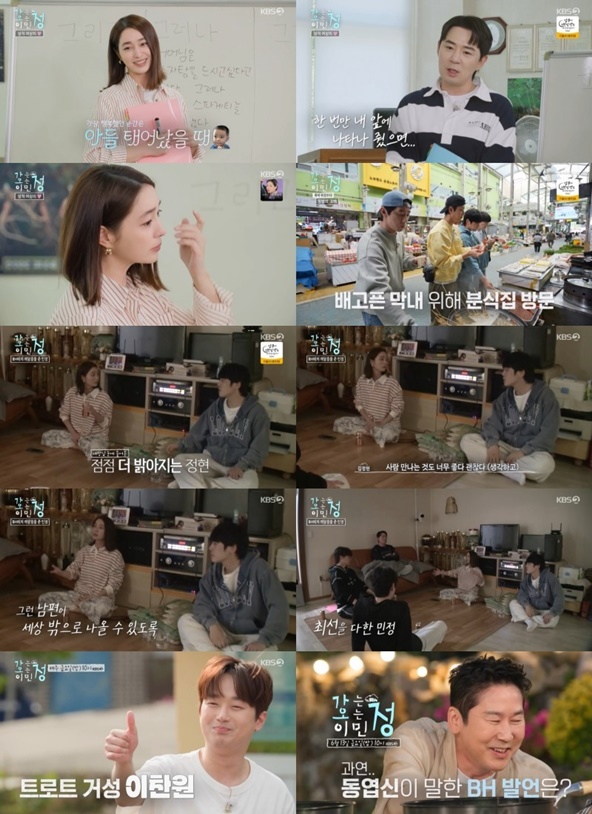 김정현에게 긍정적인 변화가 있음을 이민정이 알아챈 것. 이민정은 "배우는 혼자 있으면 살아남을 수 없다. 남편(이병헌)도 갇혀 있던 적이 있었는데 '배우는 사람을 연기하는 건데 어떻게 사람을 안 보고 연기를 해, 행복한 시간 보내면서 하는 거야'라고 말해줬다. 어느 순간 남편이 많이 달라졌다"라고 말했다. 이어 "배우는 갇히면 안 된다. 내 삶이 즐거워야지"라며 김정현에게 애정 어린 조언을 덧붙였다.
