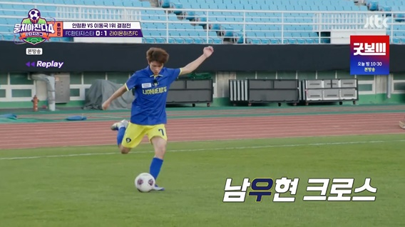 이날 방송에서는 판타지리그 1라운드 최종 1위를 가리는 안정환 감독의 'FC환타지스타'와 이동국 감독의 '라이온하츠FC'의 대결이 펼쳐졌다. 남우현은 0:0 상황에서 시작된 후반전에서 이동국의 전술에 따라 최종우와 포지션을 바꿔가며 경기를 뛰게 됐다.