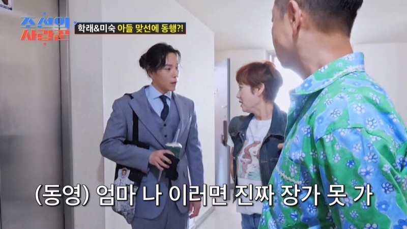 맞선 당일, 김동영은 엄마의 요구에 맞춰 스리피스 정장을 입고 아빠 김학래의 명품 시계까지 차고 꽃단장을 마쳤다. 김학래와 임미숙은 아들을 바래다주기 위해 또다시 나섰다. 김동영은 "엄마, 계속 개입하면 나 장가 못 간다"며 황당해했지만, 믿었던 김학래마저 "갈 수는 있다"며 아내 편을 들어 웃음을 자아냈다. 김학래, 임미숙 부부는 아들과 주차장에서 헤어졌지만, 역시나 몰래 아들의 맞선을 지켜보기 위해 잠입을 시도했다. 이때 이들은 아들보다 먼저 맞선녀와 만나 인사까지 해 모두를 조마조마하게 했다. 다행스럽게도 아들 김동영에게는 잠입을 들키지 않고 맞선이 시작됐다.
