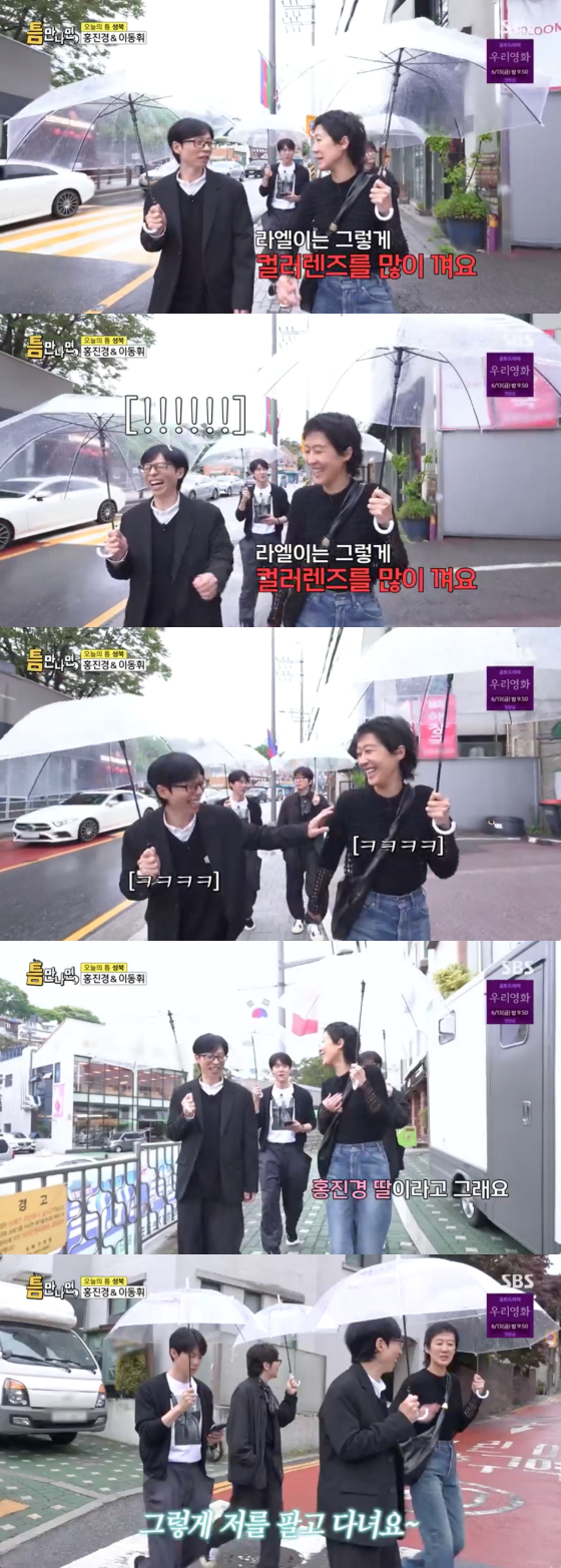 그러자 홍진경은 "라엘이는 요즘 그렇게 컬러 렌즈를 많이 낀다"고 하소연을 했고, 유재석은 폭소했다.