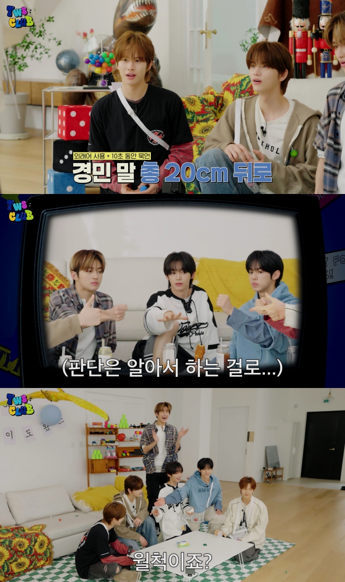 이어진 테이블 알까기 게임은 '외래어 사용 금지' 미션이 추가돼 긴장감이 더욱 고조됐다. TWS는 튀어나오려는 외래어를 간신히 한국어로 바꿔 말하며 순발력을 뽐냈고, 극도로 말을 아낀 나머지 "좋아요", "나빠요"만 반복해 웃음을 안겼다. 영상 말미에는 간지럼 태우기, 고요 속의 외침 등 다양한 게임을 섭렵하는 멤버들의 모습이 짧게 예고돼 다음 에피소드를 향한 궁금증을 키웠다.