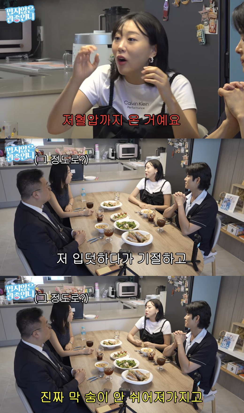 남편 손민수는 "실오라기 하나 안 걸치고 기절해있었다"며 "패닉이 오더라. 너무 당황하니까 처음에는 굳었다"고 당시 상황을 전해 모두를 놀라게 했다.