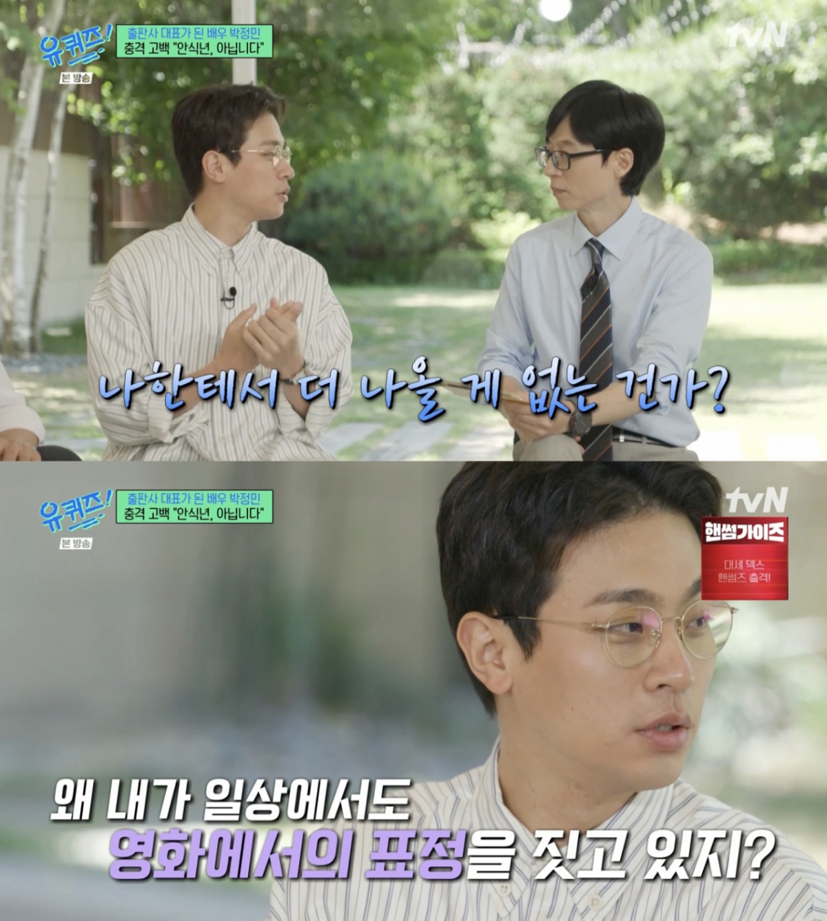 11일 방송된 tvN 예능 프로그램 '유 퀴즈 온 더 블럭' 297회에는 출판사 대표로 변신한 배우 박정민이 출연해 근황을 전했다.