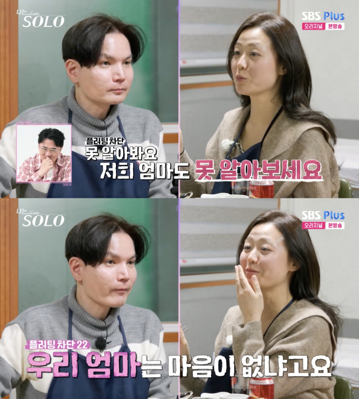 이를 듣고 있던 광수가 "난 알아볼 수 있을 것 같다"라고 말하자, 현숙은 "못 알아본다. 저희 엄마도 못 알아본다"라고 답하며 플러팅을 단호하게 차단했다.