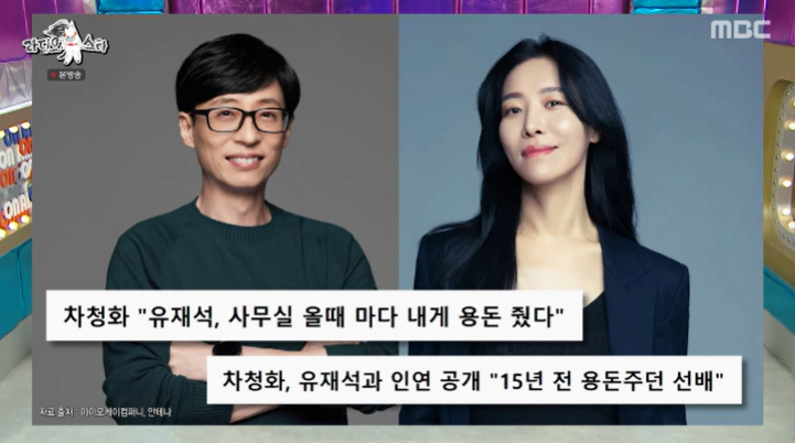 이날 MC 김구라는 "차청화 씨가 재석이한테 용돈 받은 게 엄청 화제가 됐다"라고 했다.
