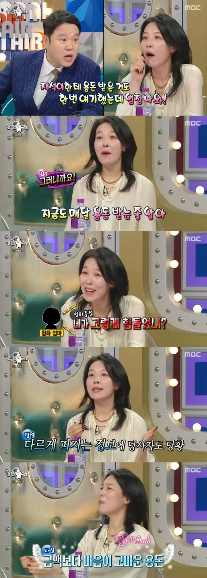차청화는 "저희 엄마가 '너 그렇게 힘들었니? 그렇게 용돈을 받았어?'라고 하더라"라며 "용돈을 다달이 받는 줄 알더라. 선배님이 당황하셨을 것 같다"라고 해명했다.