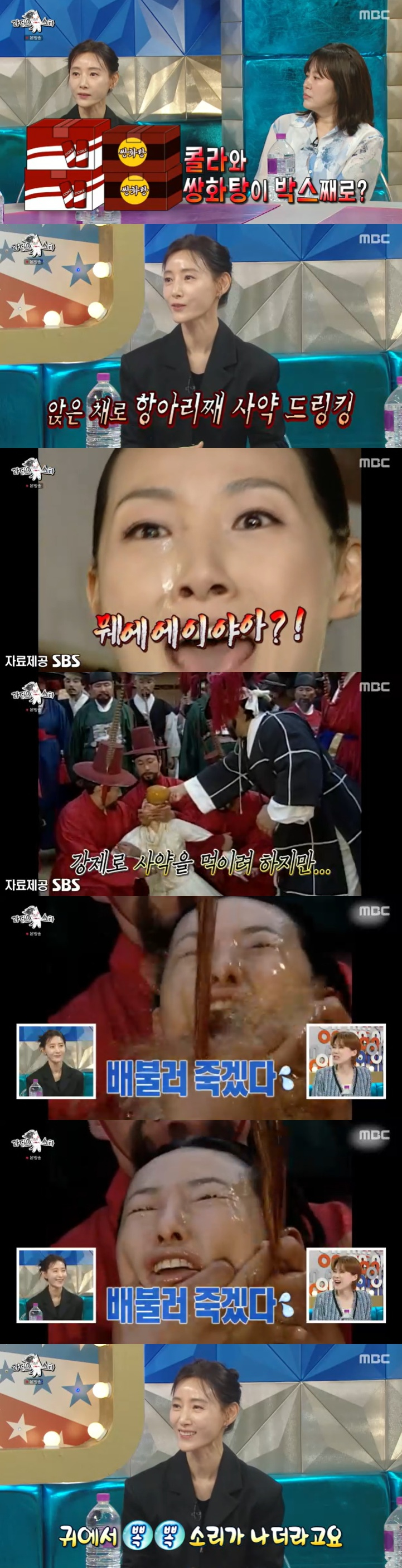그는 "제가 앉은 채로 항아리째 사약을 받았다. 촬영이 끝난 뒤에는 귀에서 '뽁 뽁' 소리가 나더라. 콜라가 귀까지 들어갔더라"라고 밝혔다.