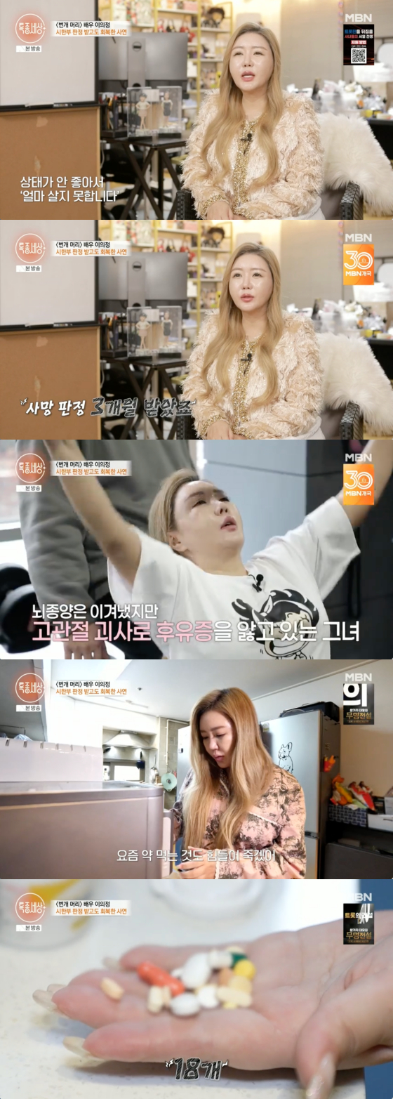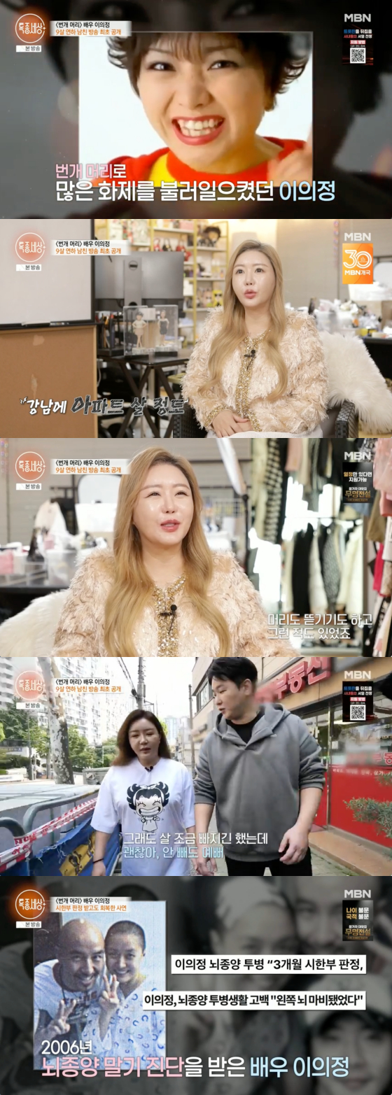 배우 이의정이 뇌종양 말기 판정을 받아 생사를 오가던 과거를 회상했다.