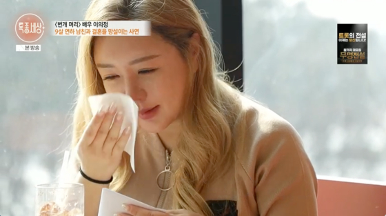 이에 이의정이 "2세 문제에 있어서 내가 부담을 많이 내려놔도 되겠냐"고 묻자 남자친구는 "완전히 내려놔도 된다. 나도 동의한 부분이지 않나"라며 이의정과 함께 눈물을 흘렸다.