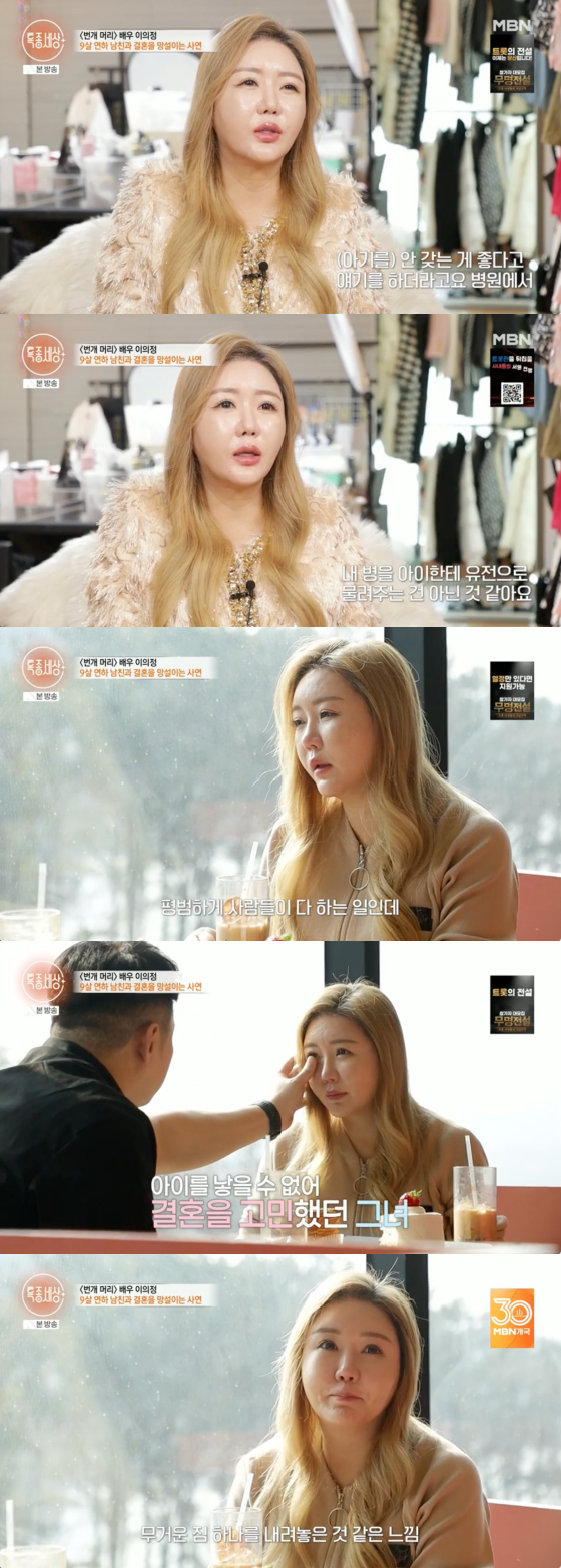 뇌종양 투병을 한 배우 이의정이 2세에 대한 고민을 고백했다.