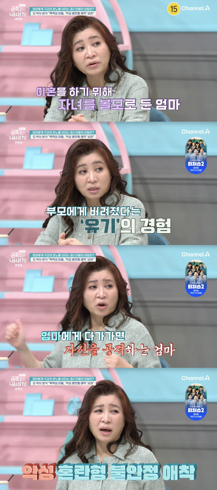 이를 지켜본 오은영은 "학교에서는 문제없는 금쪽이가 엄마에게만 이런 자신을 '나쁜 아이'라고 느끼며 자아상에 정체성 혼란을 겪고 있을 것"이라고 분석했다.
