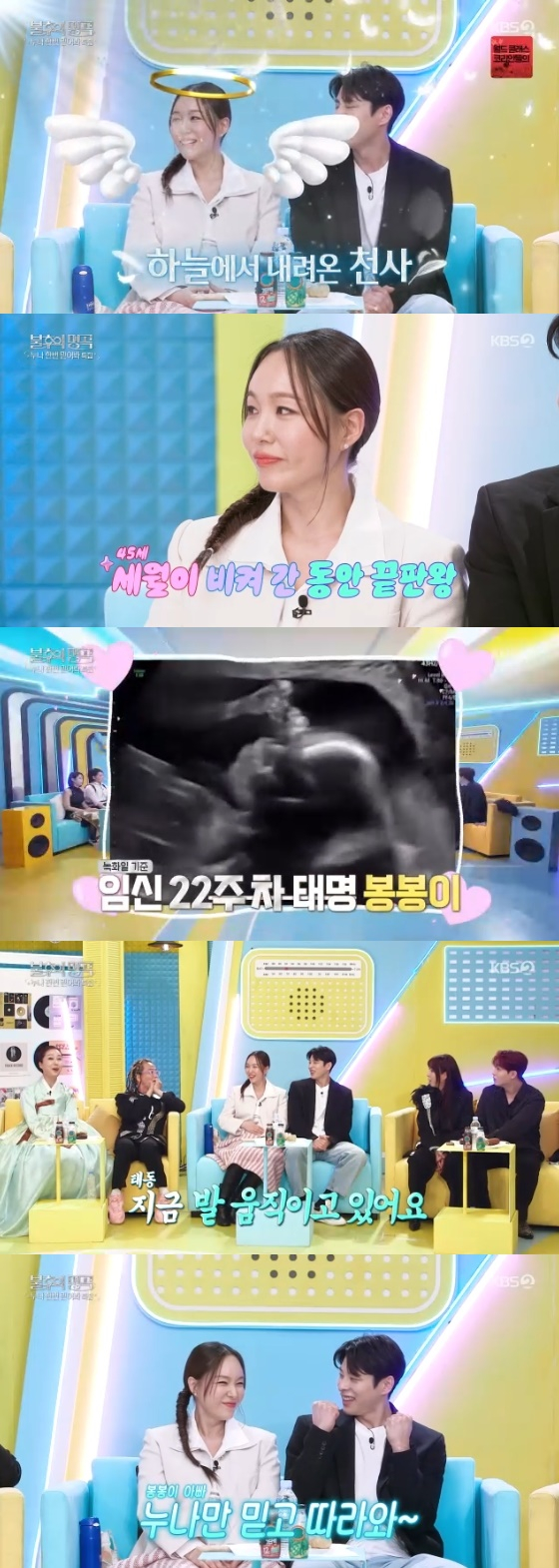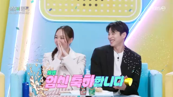 그런가 하면 두사람은 임신 소식을 알려 출연진의 박수와 환호를 받았다. MC 이찬원은 "임정희 씨가 최강 동안 외모를 자랑하시지만 만으로 44세인데 자연임신을 하셨다"라고 감탄했다. 이에 박현호는 김희현을 보며 "역시 국립발레단의 허벅지다"라고 놀라움을 감추지 못해 웃음을 유발했다.