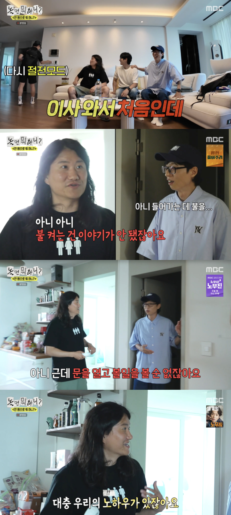 하지만 외형과 달리 내부는 '짠내' 그 자체였다. 에어컨이 꺼진 채 답답한 집 안에 유재석이 놀라자, 임우일은 "몇 월인데 에어컨이냐"라며 단호히 말했다. 심지어 촬영을 위해 불을 켜는 제작진을 보며 "이사 와서 불 다 켠 건 처음이다. 처음 저희 집 조명을 확인했다"라고 당황한 모습을 보였고, 유재석이 화장실을 갈 때조차 불을 켜지 못하게 해 웃음을 자아냈다.