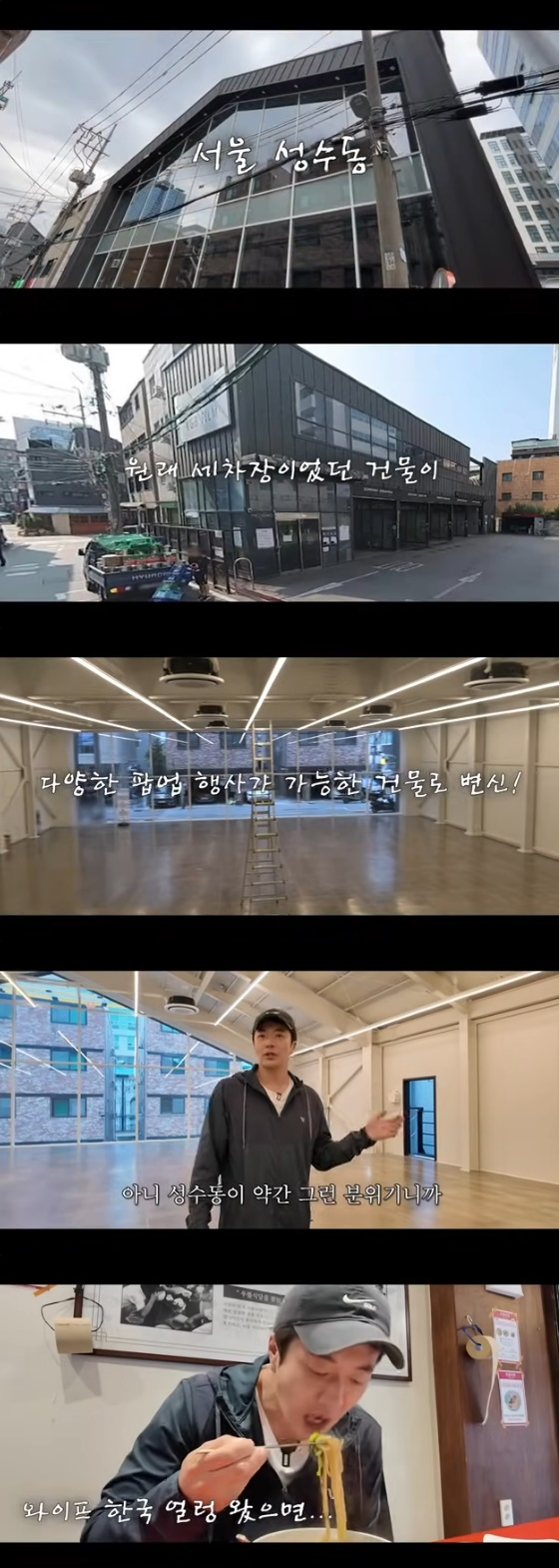 원래 세차장으로 운영하던 건물을 팝업 행사가 가능한 공간으로 새롭게 변신시킨 것. 권상우는 "아직 공사가 다 끝난 게 아니다"라며 한창 공사 중인 건물 내부를 공개했다. 그는 팝업 행사 건물로 바꾼 이유에 대해 "성수동이 약간 그런 분위기니까 그게 더 낫지 않을까 한다"라고 현실적인 답변을 내놨다.