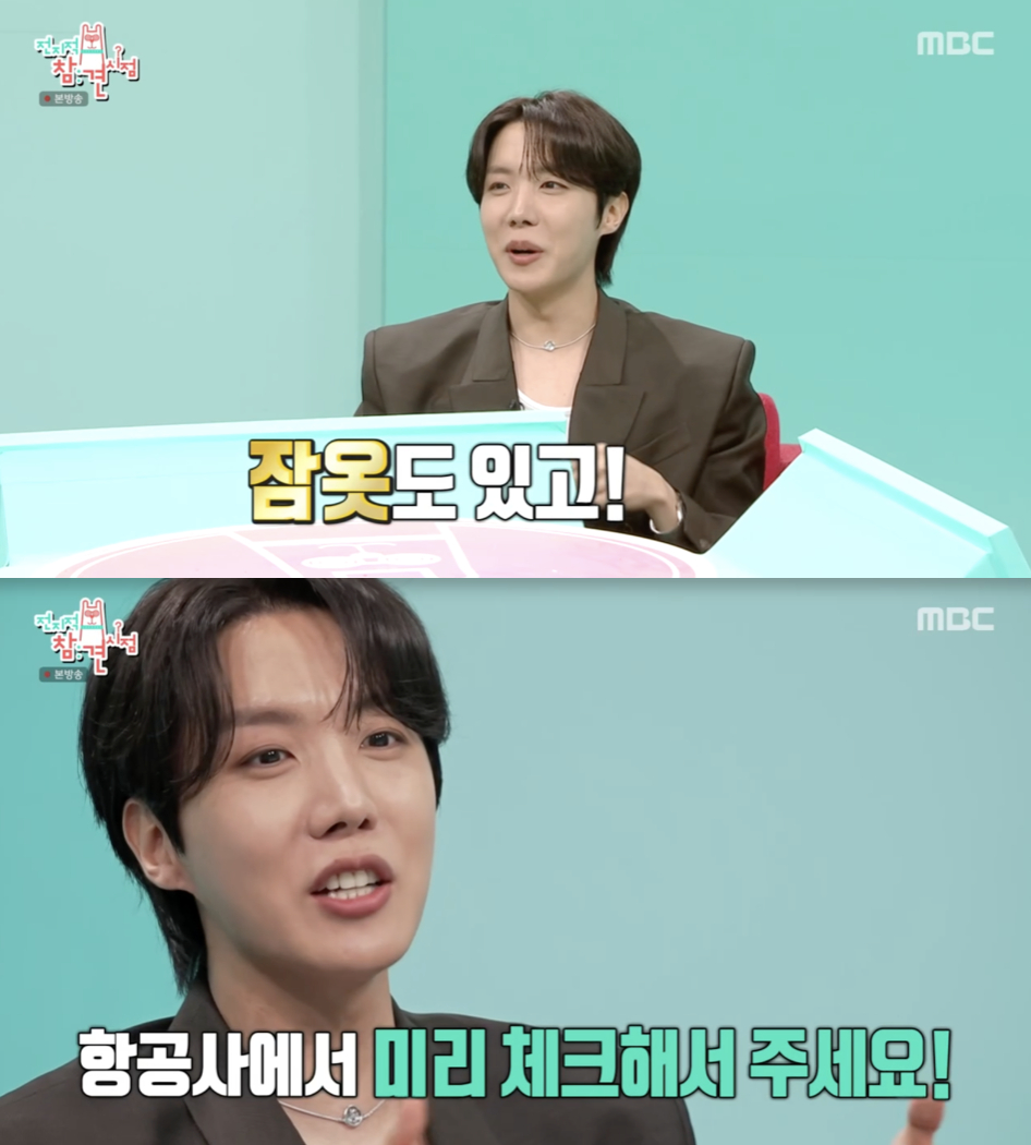 이에 양세형이 "그런 파우치나 어메니티는 챙겨오냐, 두고 오냐"고 묻자, 제이홉은 "와 진짜 참신한 질문이다"라며 웃은 뒤 "증정인데 두고 온다"고 솔직하게 답해 웃음을 더했다.
