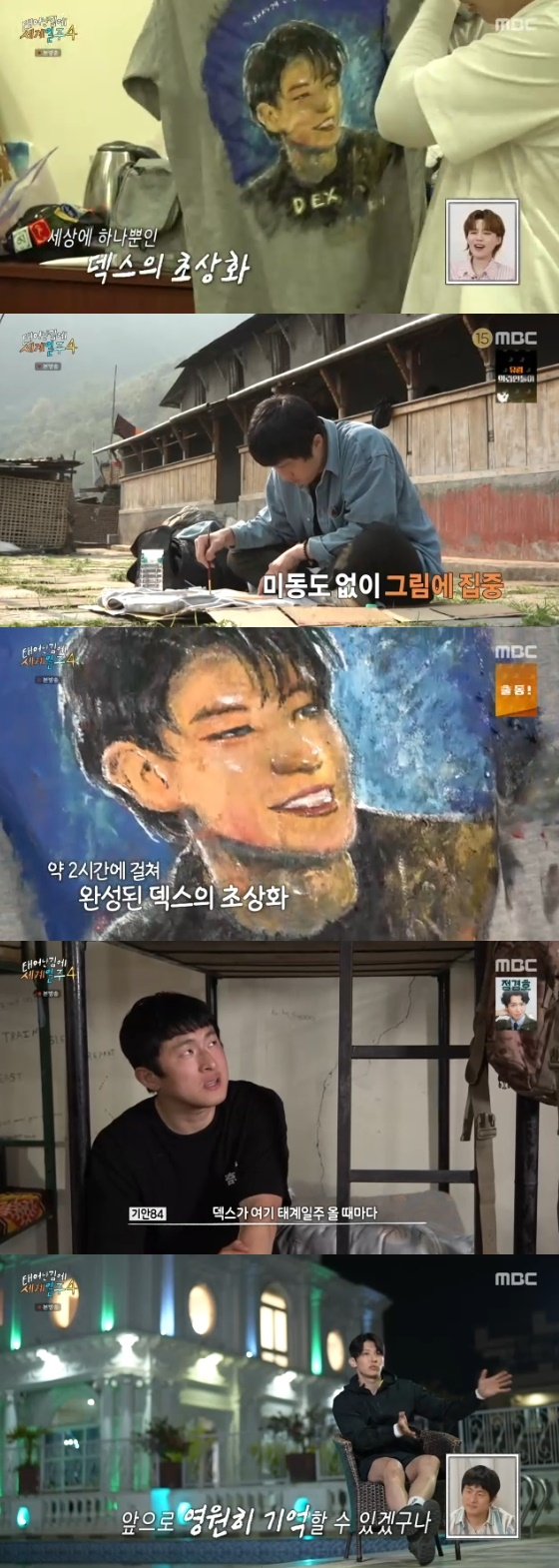 덱스는 자신의 초상화가 담긴 티셔츠를 받고 놀라움을 금치 못했다. 앞서 기안84는 멤버들 몰래 히말라야에서 티셔츠를 구입한 뒤 미리 준비해 온 물감으로 2시간에 걸쳐 덱스의 초상화를 완성했다. 그는 "시언이형도 그림을 그려줬고, 빠니보틀도 생일에 그려줬는데 덱스만 못 그려준 것 같아서 그리게 됐다"고 전했다.