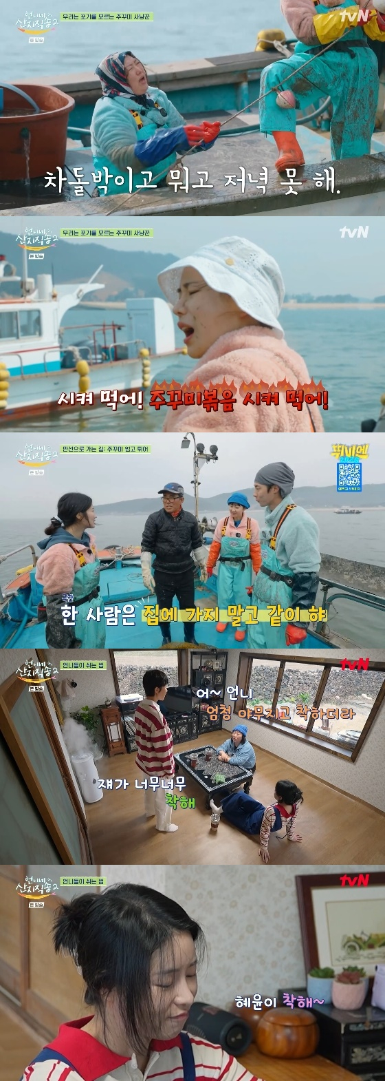 15일 방송된 tvN '언니네 산지직송2'에서는 김혜윤과 함께 보령의 봄철 대표 식재료인 주꾸미를 수확하는 사남매의 모습이 그려졌다.