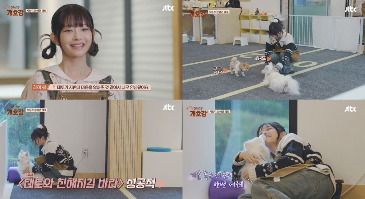 이날 레이는 중소형견반 선생님으로 나서 특별 수업을 펼쳤다. 특히 시청각 장애견 테토를 밀착 마크하며 미로 탈출 수업을 도왔다.