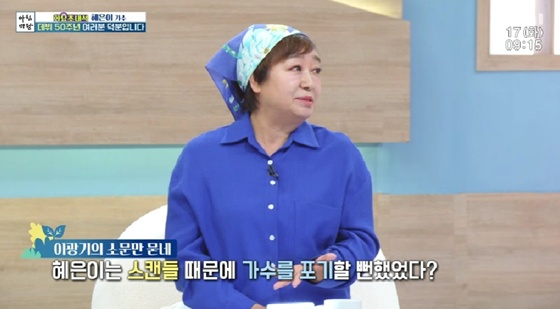 가수 혜은이가 스캔들, 사망 가짜뉴스 등으로 가수 생활에 위기가 왔다고 밝혔다.