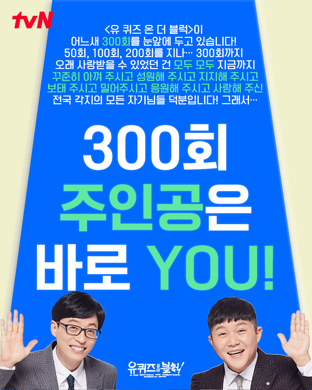 대망의 300회를 맞이하는 tvN '유 퀴즈 온 더 블럭'이 출연진을 공개 모집한다.