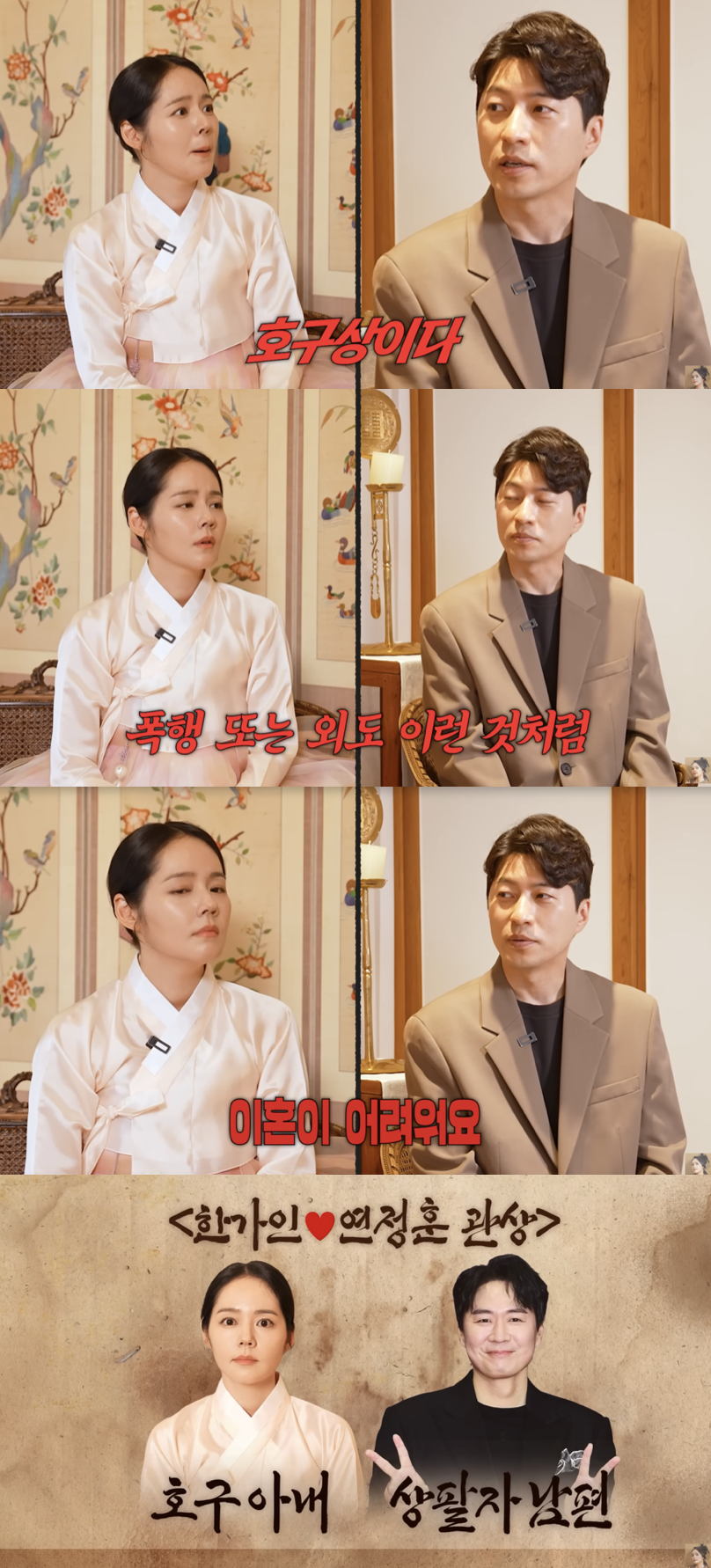 이어 한가인이 "연정훈과 백년해로할 운명이냐"며 "20년 살았는데 많이 산 것 같다"고 묻자, 관상가는 "한가인님은 남편이 외도나 폭행을 하지 않는 이상 이혼이 어렵다"고 답했다. 이에 한가인은 "이번 생은 연정훈과 하는 걸로"라고 덧붙이며 씁쓸한 미소를 지어 웃음을 자아냈다.