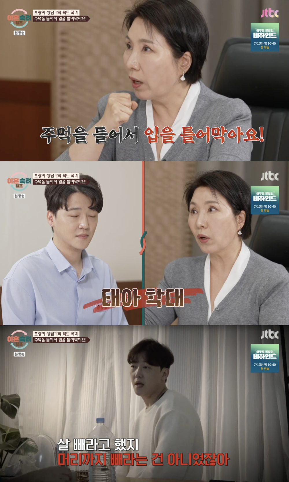 이후 부부는 심리 상담가 이호선을 만났고, 이호선은 임신 중인 아내에게 폭언을 일삼는 남편에게 단호히 "승훈 씨, 직설적이죠? 때로는 입을 틀어막아야 할 때도 있다. 주먹을 들어서 입을 틀어막아요"라고 직언했다.