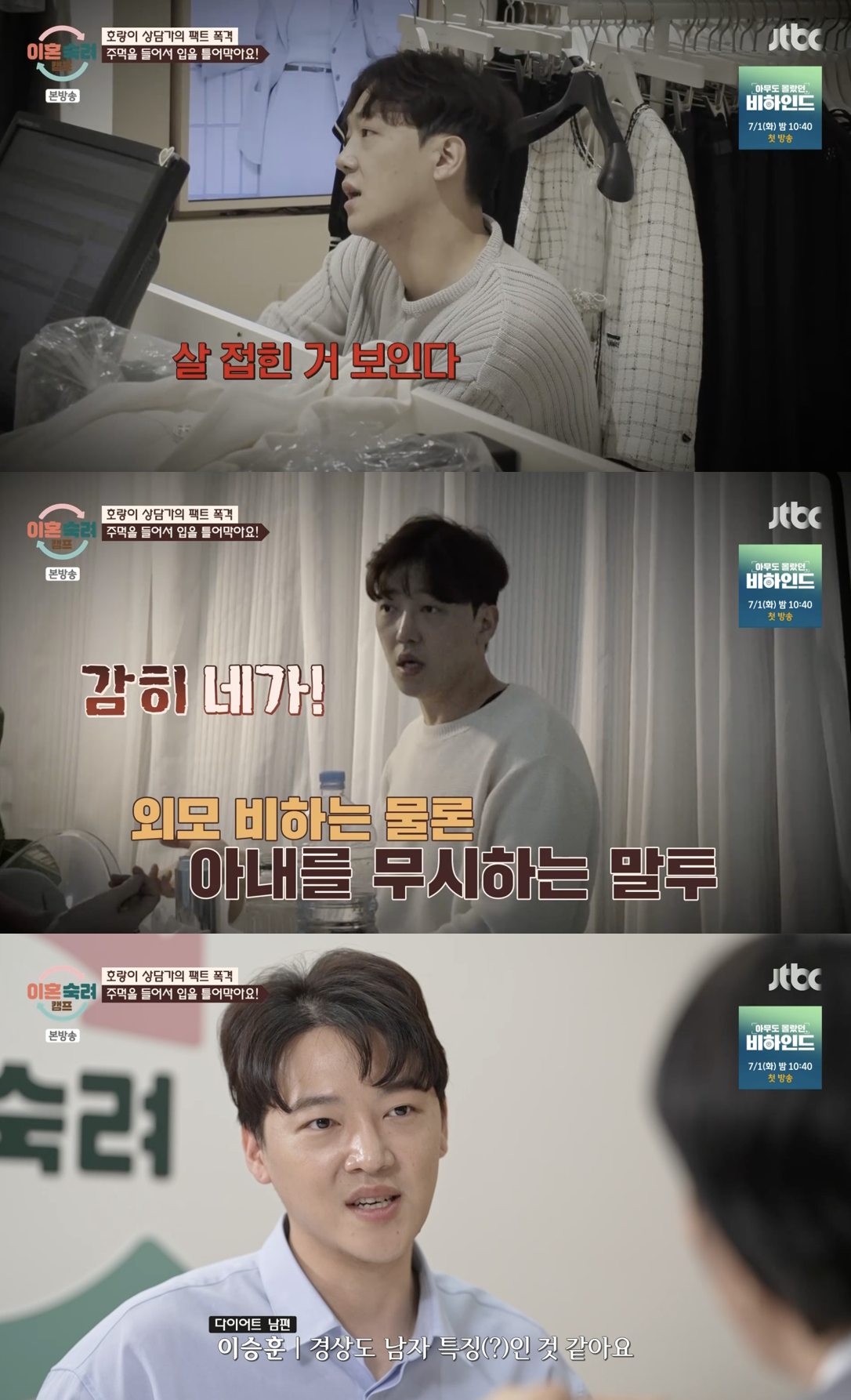 19일 방송된 JTBC 예능 프로그램 '이혼숙려캠프'에서는 12기 마지막 출연자인 '다이어트 부부'의 가사조사를 위한 일상과 심리 상담 장면이 공개됐다.