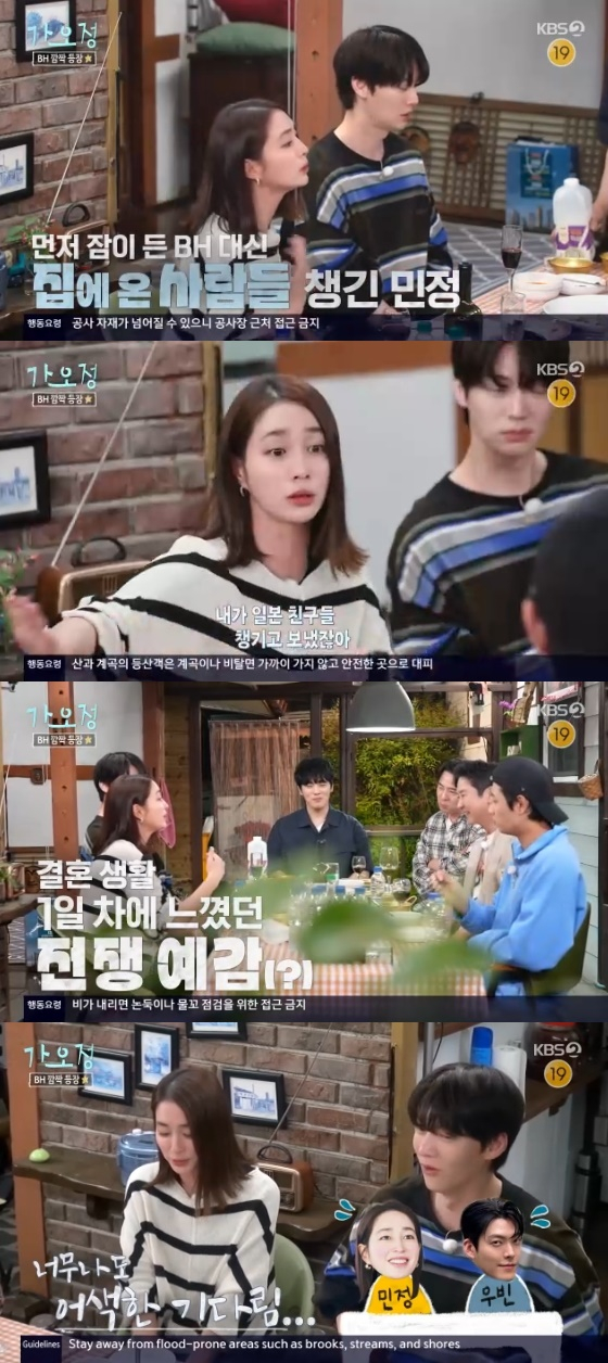 그런가 하면 이민정은 배우 김우빈과 초면에 어색했던 사연도 털어놨다. 그는 "김우빈 씨가 우리 집에 처음 놀러 온 날이었는데 오빠가 술을 막 먹더니 '나 너무 졸린데? 우빈아, 민정이랑 마시고 가'하더니 그대로 자더라"라며 황당했던 첫 만남을 회상해 웃음을 유발했다.
