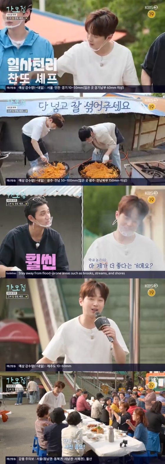 한편 이찬원이 준비한 음식을 맛본 어르신들은 "홀딱 다 먹어버리게 된다", "맛있다", "요리 잘한다"며 엄지를 치켜세웠다. 이찬원은 자신의 히트곡인 '진또배기'를 열창해 현장 분위기를 후끈 달아 올렸다. 이에 김재원은 "찬원이 형 슈퍼스타야"라고 혀를 내둘러 웃음을 자아냈다.