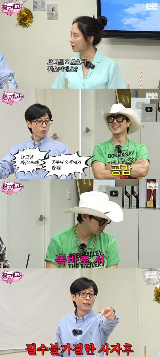 이날 송지효가 "오빠도 지호한테 잔소리하냐"고 묻자 유재석은 "당연히 한다. 나는 내가 어렸을 때, 혹시 나중에 결혼해서 아이를 낳으면 '자유, 프리다', '공부나 숙제 얘기 안 한다'고 했는데 내가 들었던 2배를 한다"고 밝혔다.