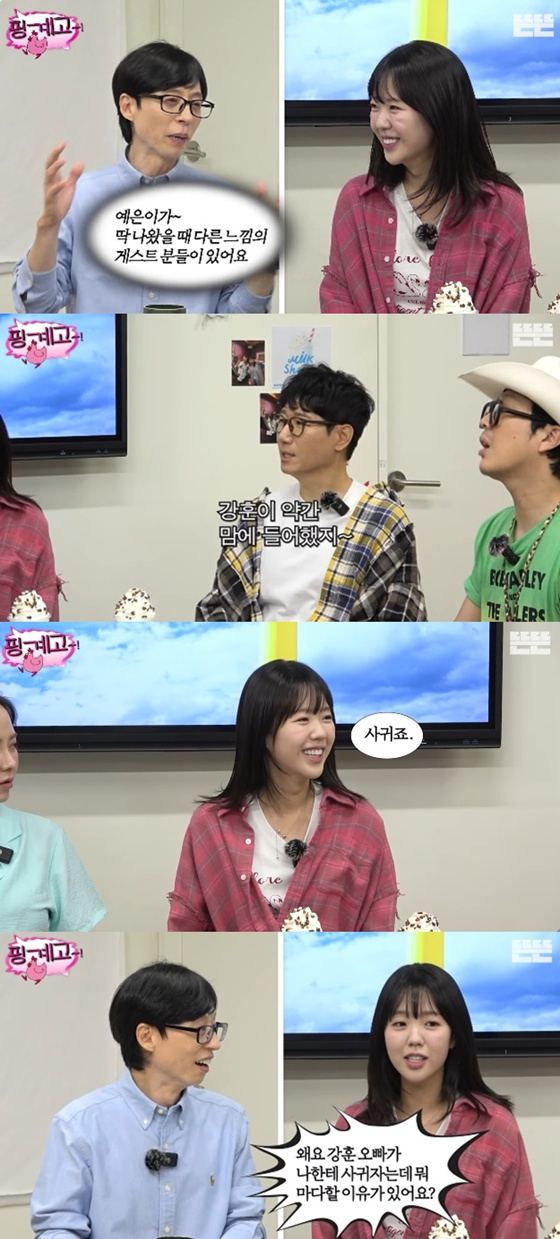그러자 하하는 "얘는 강훈이다. 너 만약에 강훈이가 사귀자고 하면 사귈 거냐"라고 물었다. 지예은은 "사귄다"며 "강훈 오빠가 나한테 사귀자고 하는데 마다할 이유가 있냐"고 답했다.