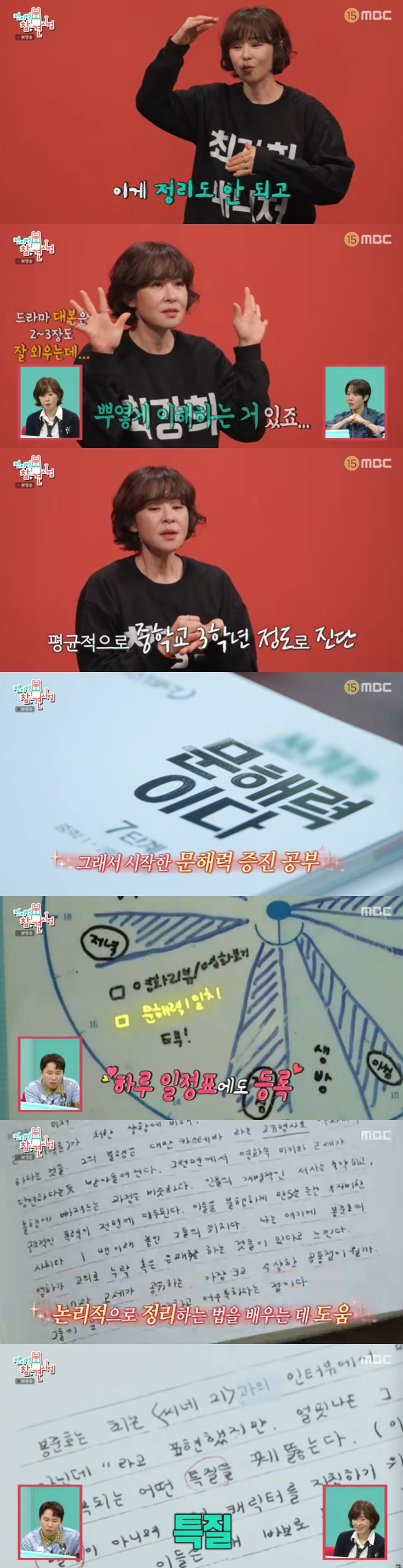 최강희는 아나운서에게 숙제 검사를 받으며 '특질'이란 단어를 모른다고 했다. 최강희는 "특징은 아는데 특질을 모르겠다"라며 "특질은 특징적인 기질?"이라고 추측했다.