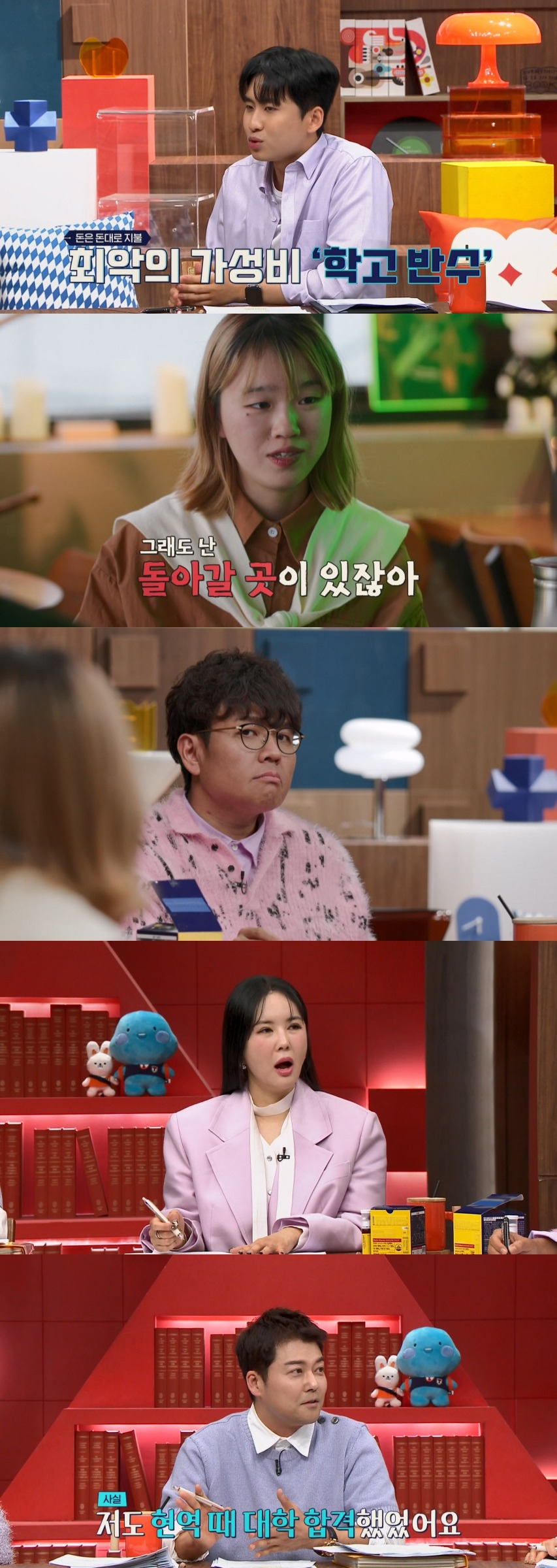 '입시 전략 멘토' 미미미누는 "반수 유형에는 3가지가 있다. 첫 번째는 1학기 다니고 2학기는 휴학 후 수능 준비하는 일반적인 반수다. 두 번째는 '학고 반수'로, 등록금을 내야 하는 경제적인 부담이 있다. 마지막은 휴학 없이 대학 생활을 병행하며 수능을 준비하는 경우다. 이 중 가성비가 낮은 건 '학고 반수'다"라며 최악의 가성비 '학고 반수'를 선택한 도전학생에 의아해했다.