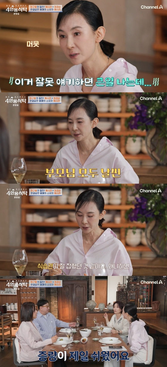 이에 채시라는 "이거 잘못 얘기하면 큰일 나는데"라며 "부모님 두 분이 다 날씬하신 편이다. 식습관이 잘 들었던 거 같다. 갑자기 안 먹고 그런 거 없이 꾸준하게 먹었다"고 밝혔다.