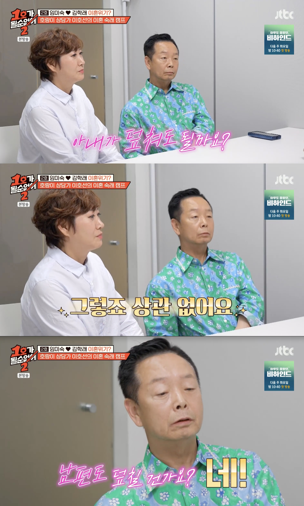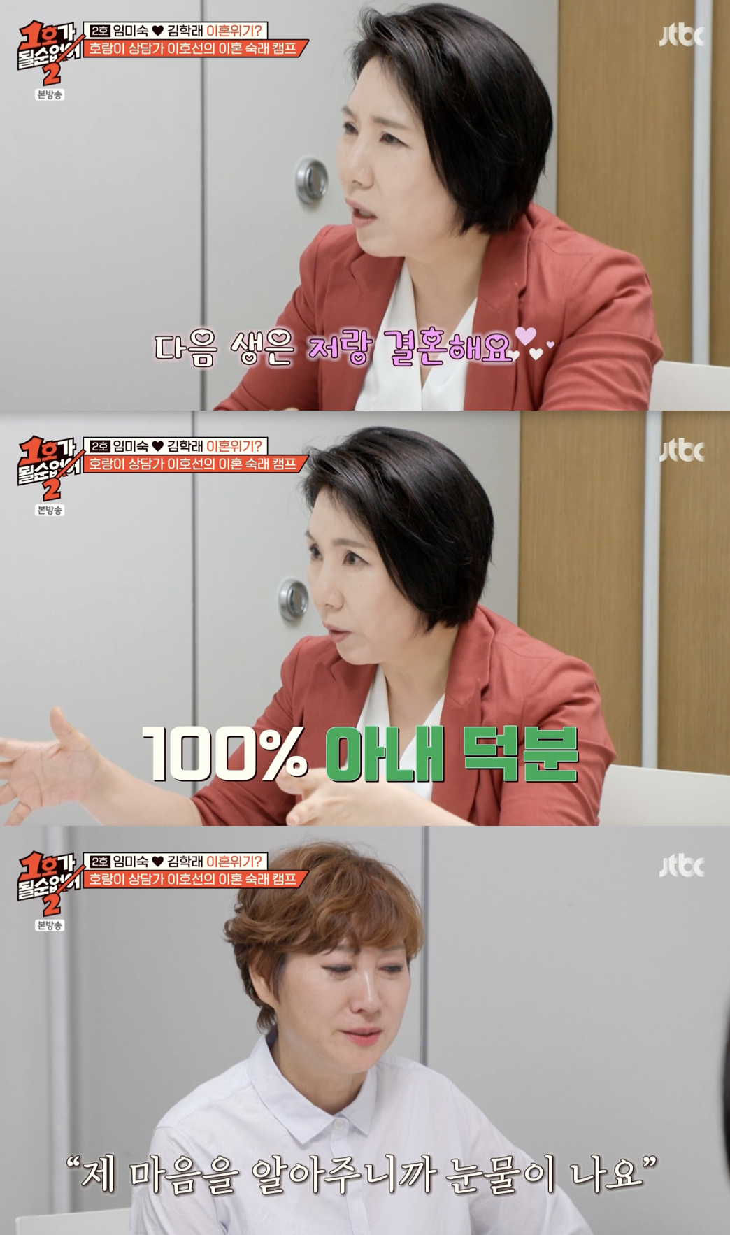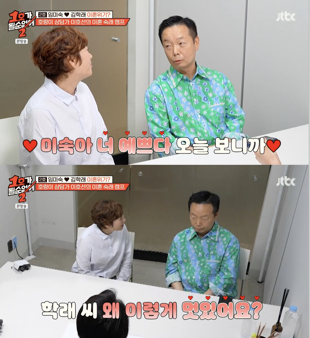 25일 방송된 JTBC 예능 프로그램 '1호가 될 순 없어2'에서는 임미숙·김학래 부부가 '이혼숙려캠프'로 얼굴을 알린 이호선 교수에게 부부 상담을 받는 모습이 그려졌다.