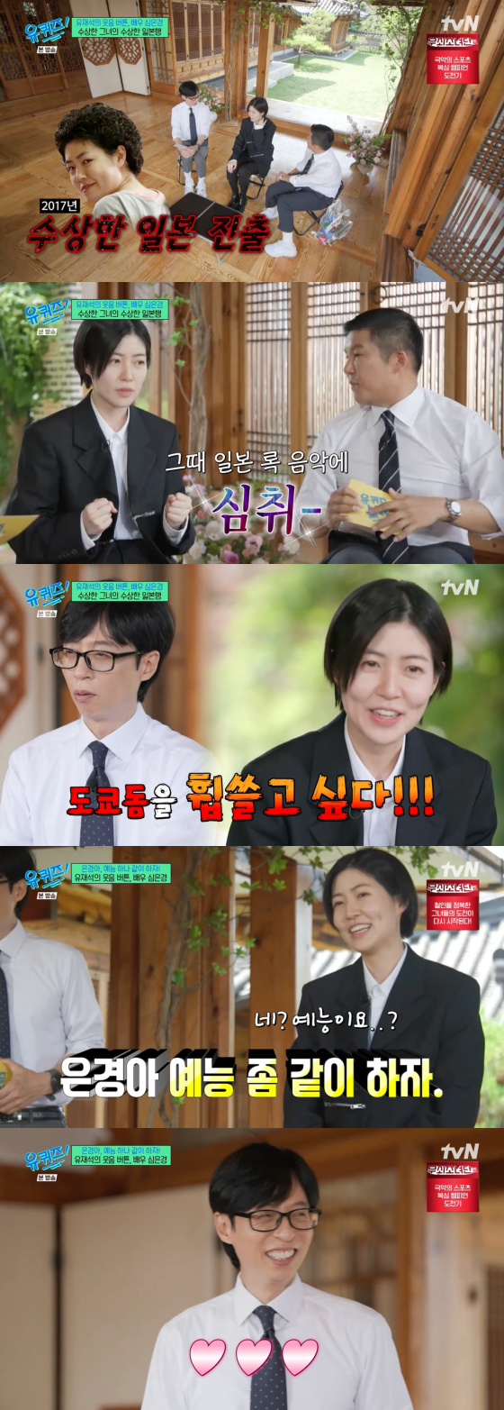 이를 지켜보던 유재석은 "은경아, 예능 좀 같이 하자"고 연신 탐을 냈고, 심은경은 "예능이요? 넋이 나가네"라고 난색을 표해 모두를 웃게 했다.