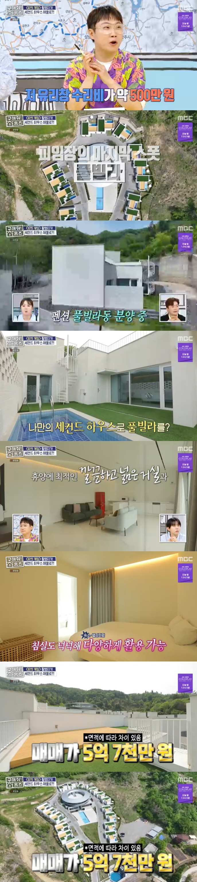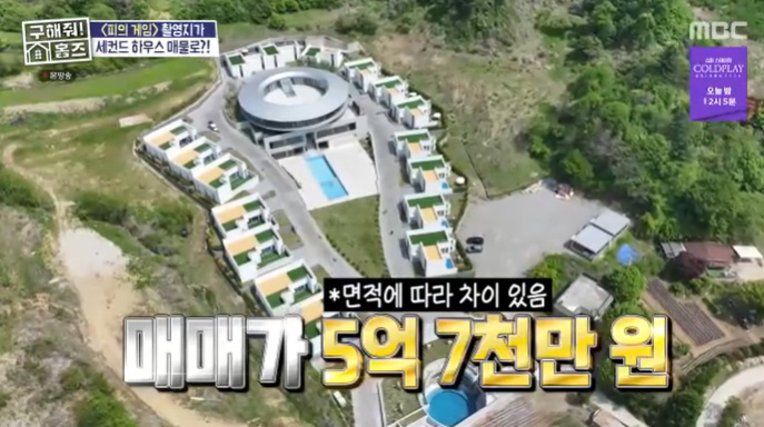 장동민은 "펜션 풀빌라동을 분양한다고 하더라"라고 했고, 김숙은 "'피의 게임' 촬영 건물 양 옆 빌라 17채는 매매도 가능하다. 매매가 5억 7천만 원이다"라고 전했다.