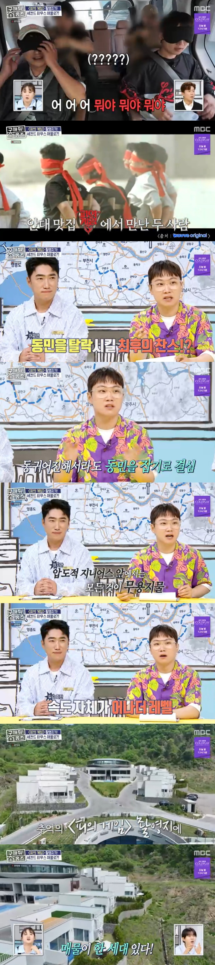 이날 다음 장소로 이동하기 위해 두 사람이 차량에 탑승하자 제작진이 이들에게 안대를 씌워 '피의 게임'을 연상케 했다. 빠니보틀과 장동민은 지난해 공개된 웨이브 '피의 게임'에 함께 출연한 바 있다.