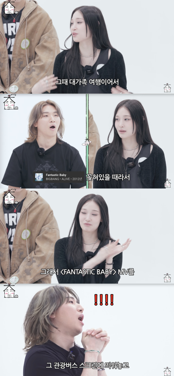 그는 "엄마가 빅뱅의 'FANTASTIC BABY'에 꽂혀있었다. 그래서 판타스틱 베이비 뮤직비디오를 다운 받아서 관광버스 스크린에 띄워놓고 그것만 버스에서 나오고 있다. 그래서 엄마는 판타스틱베이비에 나오는 모든 악세서리를 다 외우고 있다"라며 폭소를 자아냈다.