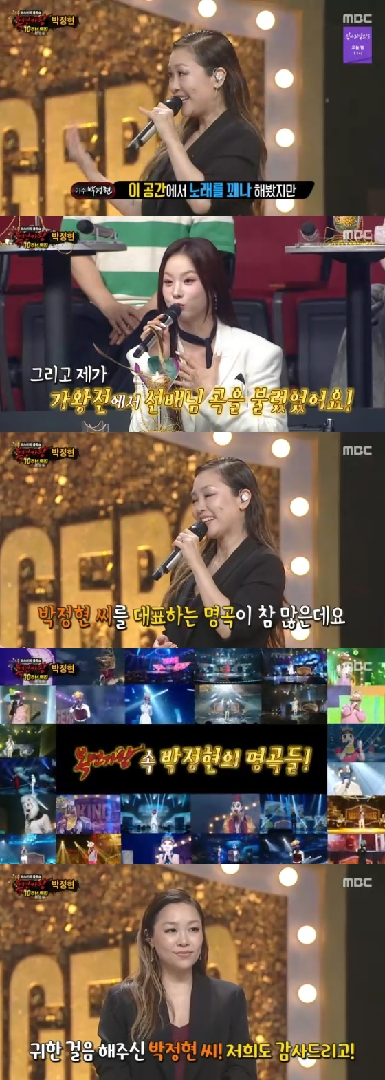 박정현은 또 자신의 노래가 '복면가왕'에서 수많은 가왕들의 사랑을 받았던 점을 언급하면서 고마움을 표했다. 그는 "노래를 통해서 그 사람과 일면도 없는데 가까워지는 느낌을 받았다"며 "너무너무 고맙다"고 말해 현장을 훈훈하게 만들었다.