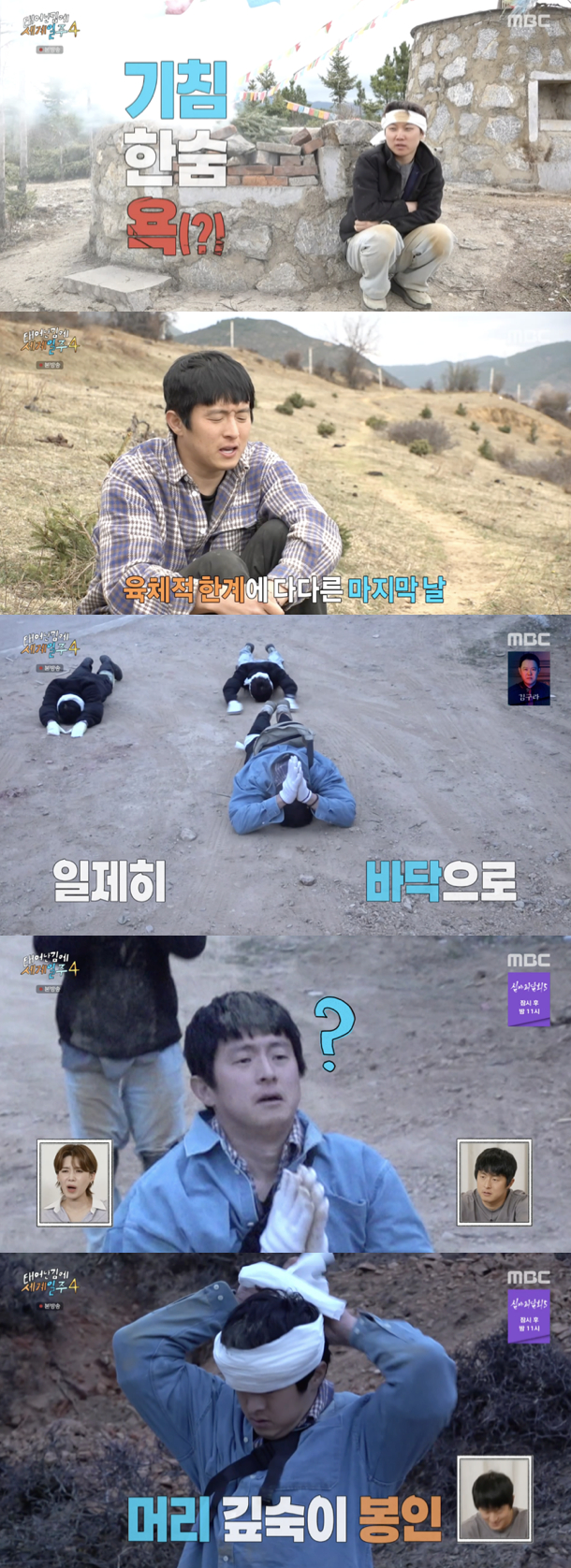 다음날 새벽, 세 사람은 무릎, 팔꿈치, 이마에 보호장비를 착용하고 오체투지를 시작했다. 기안84는 처음에는 이마 보호대 없이 시작했지만 금세 착용했고, "자갈이 뾰족하게 박혀서 무릎을 찌르고, 먼지 먹고, 길에는 똥까지 있어서 진짜 힘들었다. 기록을 보며 달리는 마라톤이랑 달리, 이건 완전히 나 자신에게 집중하게 되더라"라고 말했다.