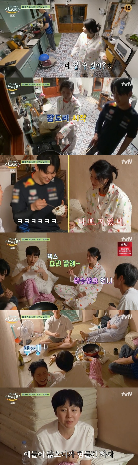그러나 임지연은 "너 전 부쳐본 적 있어?"라고 2차전을 시작했다. 이에 염정아는 "덱스 요리 잘해"라고 두둔했고, 덱스 역시 "난 심지어 밥공기를 대고 크리스피하게 부쳤다"라고 자신만만한 표정을 지었다.