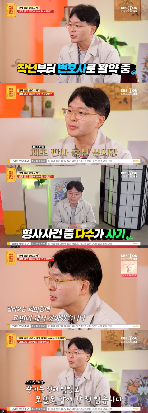 30일 방송된 KBS Joy 예능 프로그램 '무엇이든 물어보살'에는 판사 출신 변호사는 정재민이 출연했다.