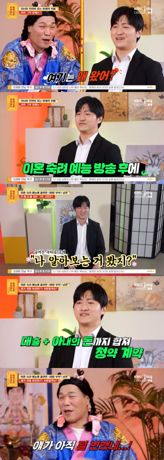 30일 방송된 KBS Joy 예능 프로그램 '무엇이든 물어보살'에는 JTBC '이혼숙려캠프'에서 음란물 중독, 외도 등 문제 행동으로 논란을 불러일으켰던 음란물 중독 남편이 사연자로 출연했다.
