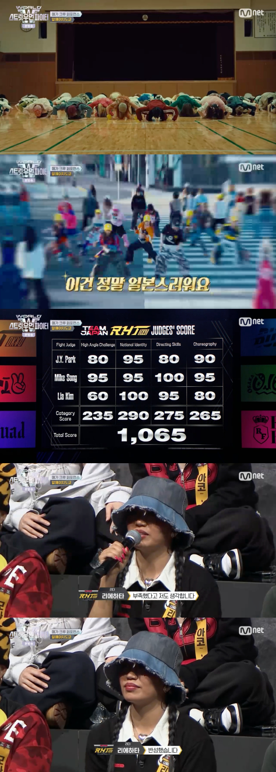 심사위원 리아킴은 "일본의 아이코닉한 걸 굉장히 많이 담았다"면서도 "메가 크루로서 보여줄 수 있는 퍼포먼스는 아니였다"고 아쉬움을 표했다.